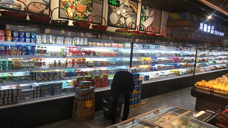案例名稱:盒馬生鮮超市--內(nèi)置機(jī)風(fēng)幕柜