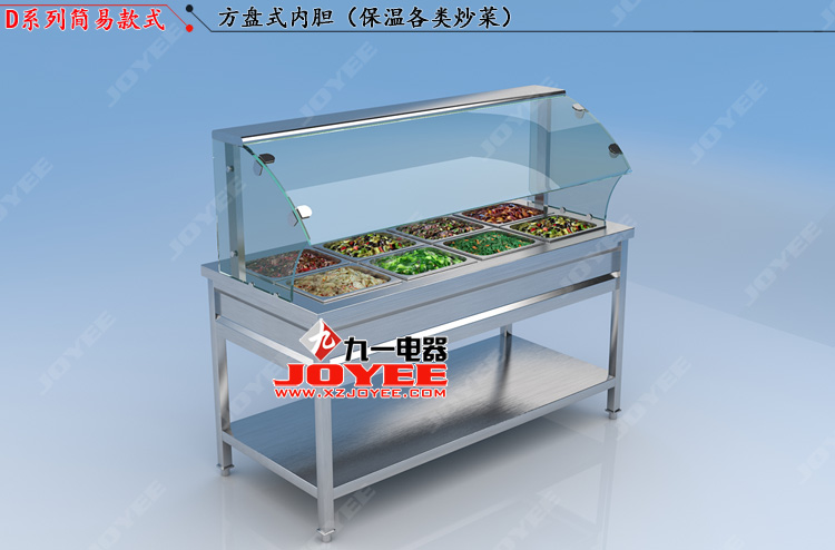 上部弧形鋼化玻璃罩,前開口式玻璃罩方便傳遞菜品,內(nèi)置LED照明展示效果更佳,全304不銹鋼柜體,厚度0.8mm板材鍛造堅固耐用!