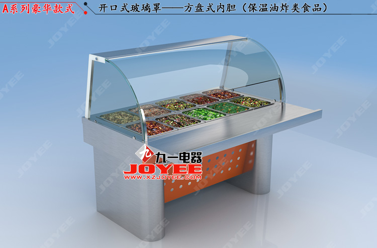0516-83891100前部不銹鋼平臺,前開口式玻璃罩方便傳遞菜品,內(nèi)置LED照明展示效果更佳,全304不銹鋼柜體,厚度1.0mm板材鍛造堅固耐用!