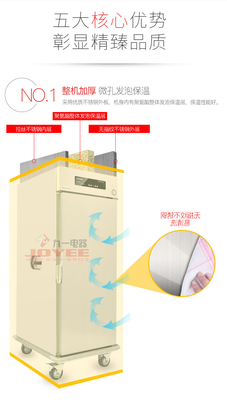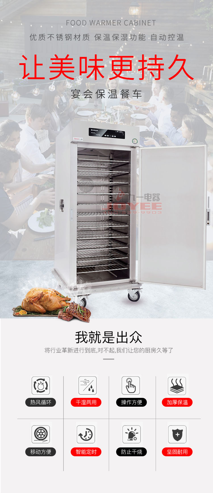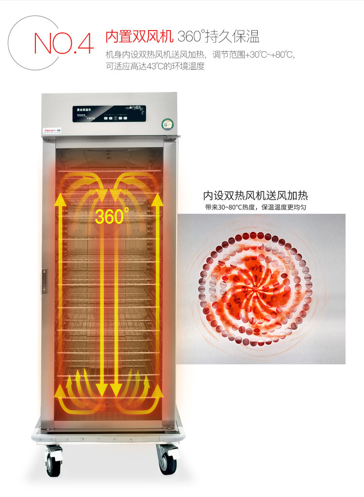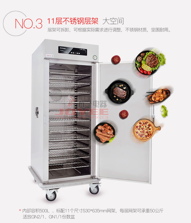 風(fēng)熱風(fēng)循環(huán)加熱系統(tǒng),柜內(nèi)加熱快速均勻,全聚氨酯微孔發(fā)泡保溫層保溫效果更佳,11層超大存儲(chǔ)空間,純不銹鋼柜體堅(jiān)固耐用。